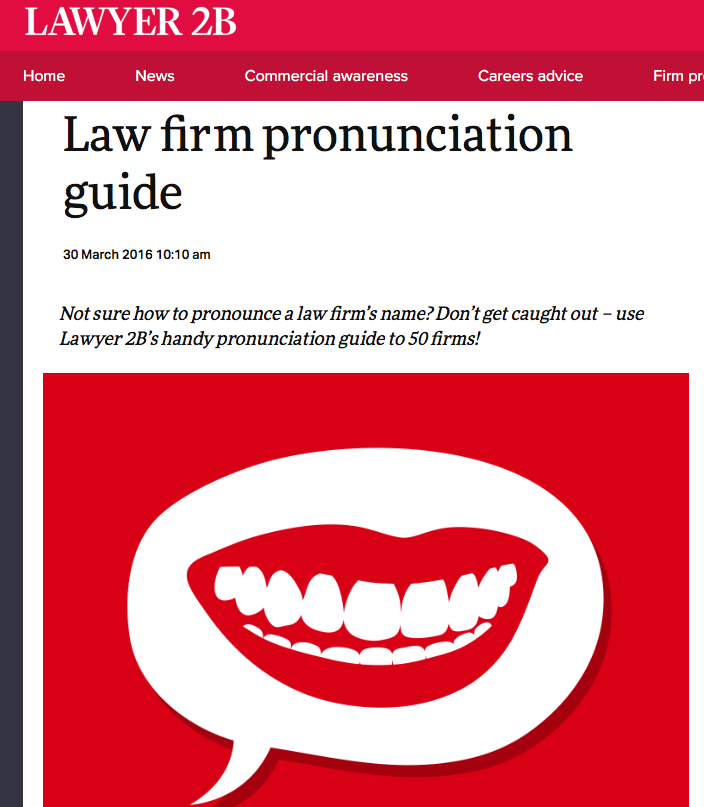 Check it out at Lawyer2B: Law firm pronunciation guide